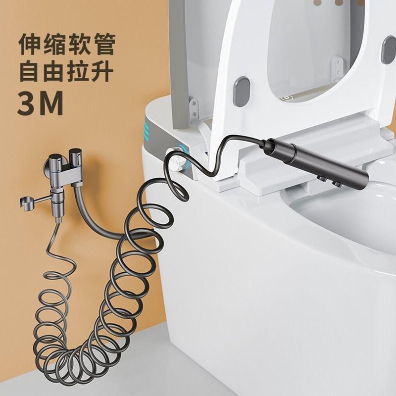 Cross-Border 304 Stainless Steel Bidet Set Pressure Spray Gun Balcony Silver Built-in Installation One Inlet Two Outlets 1Map