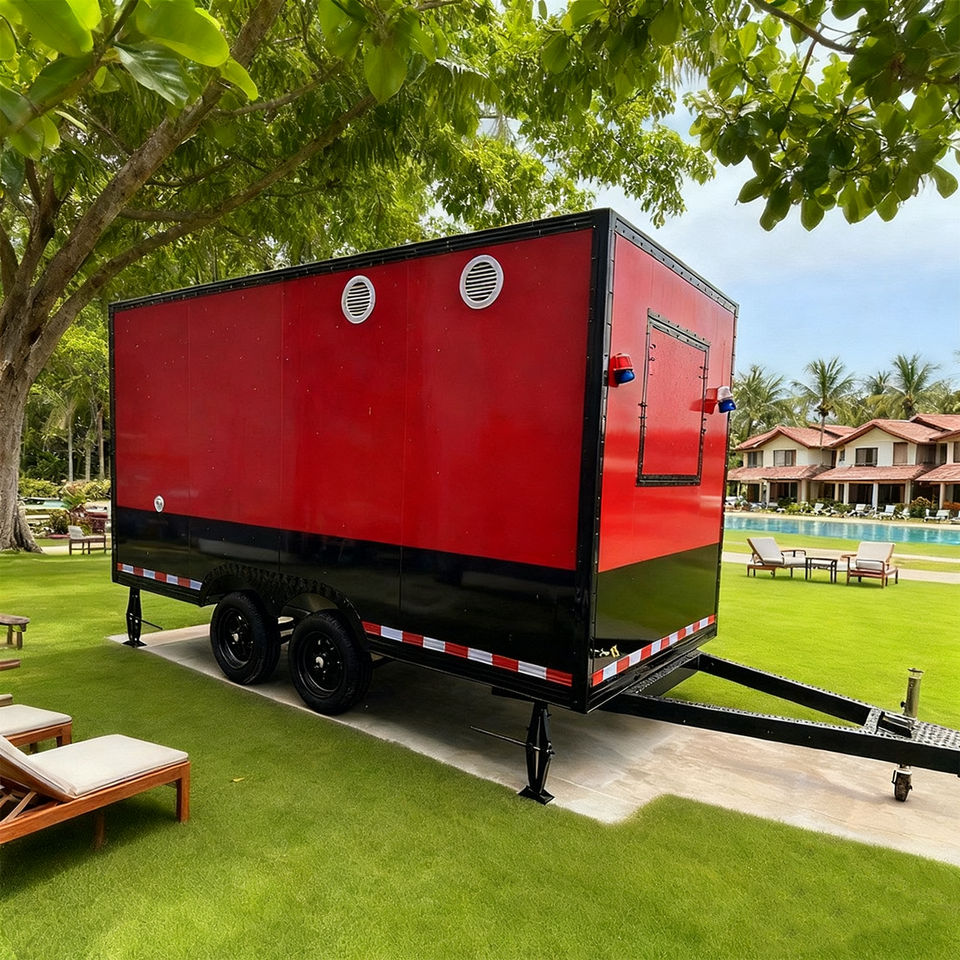 Cross Border 5M Square Ice Cream Food Truck Stainless Steel Black Red Tow Bar Wheel Hub Spray Painted Mobile Street Stall