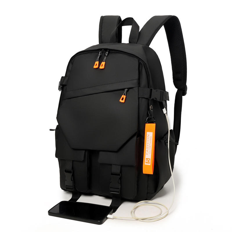 Cross Border Computer Backpack For Men 15 Inches USB Charging Business Travel Student Backpack Solid Color Gray And Black