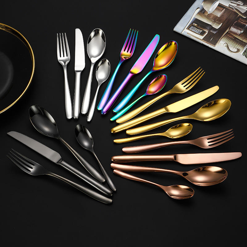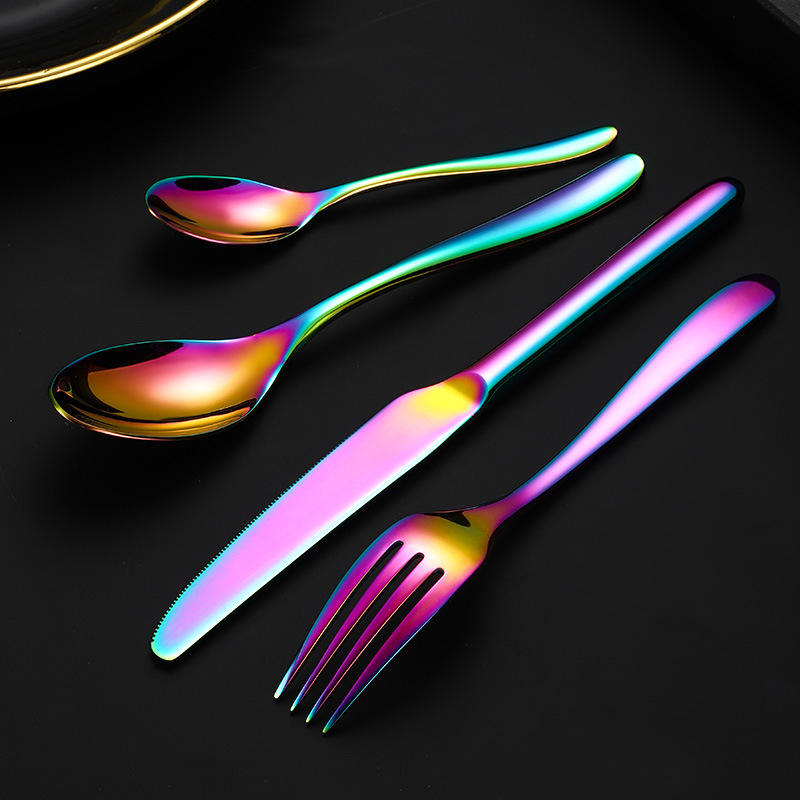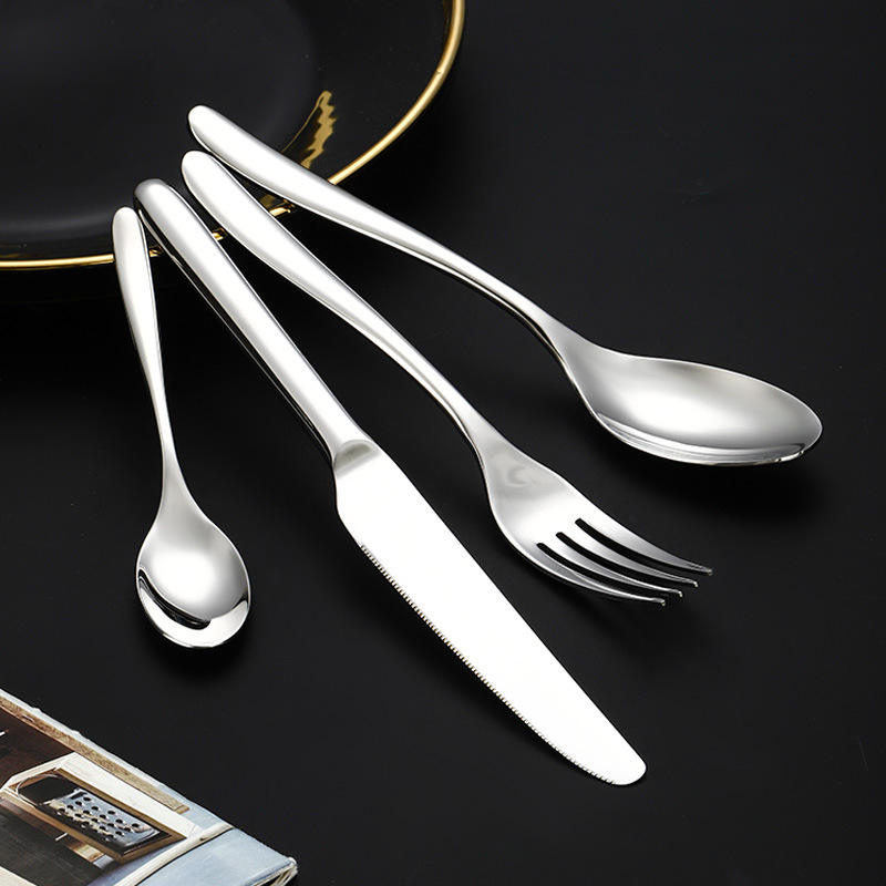 Cross Border Creative 304 Stainless Steel Knife Fork Spoon Set Oval Handle Durable Western Dinnerware Four Piece Set
