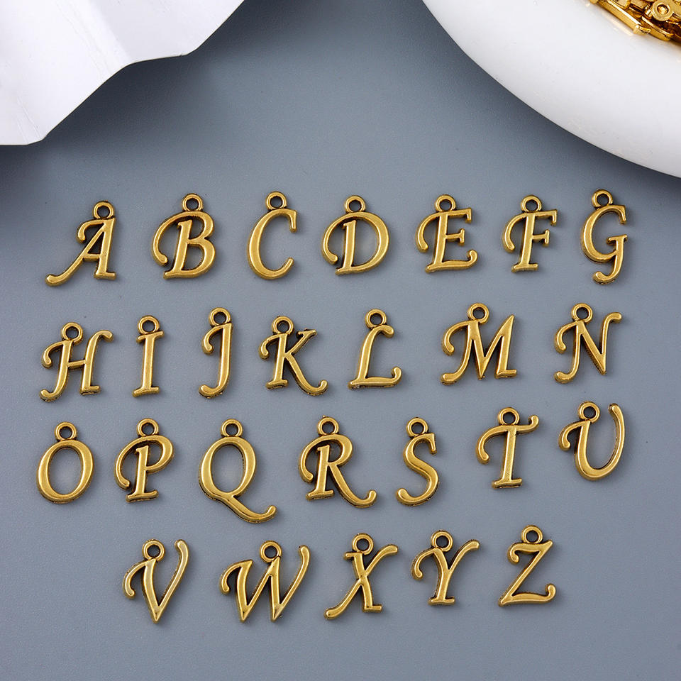 Cross-Border European and American Fashion Simple Stainless Steel 26 Capital English Letters Earrings Necklace Jewelry Set