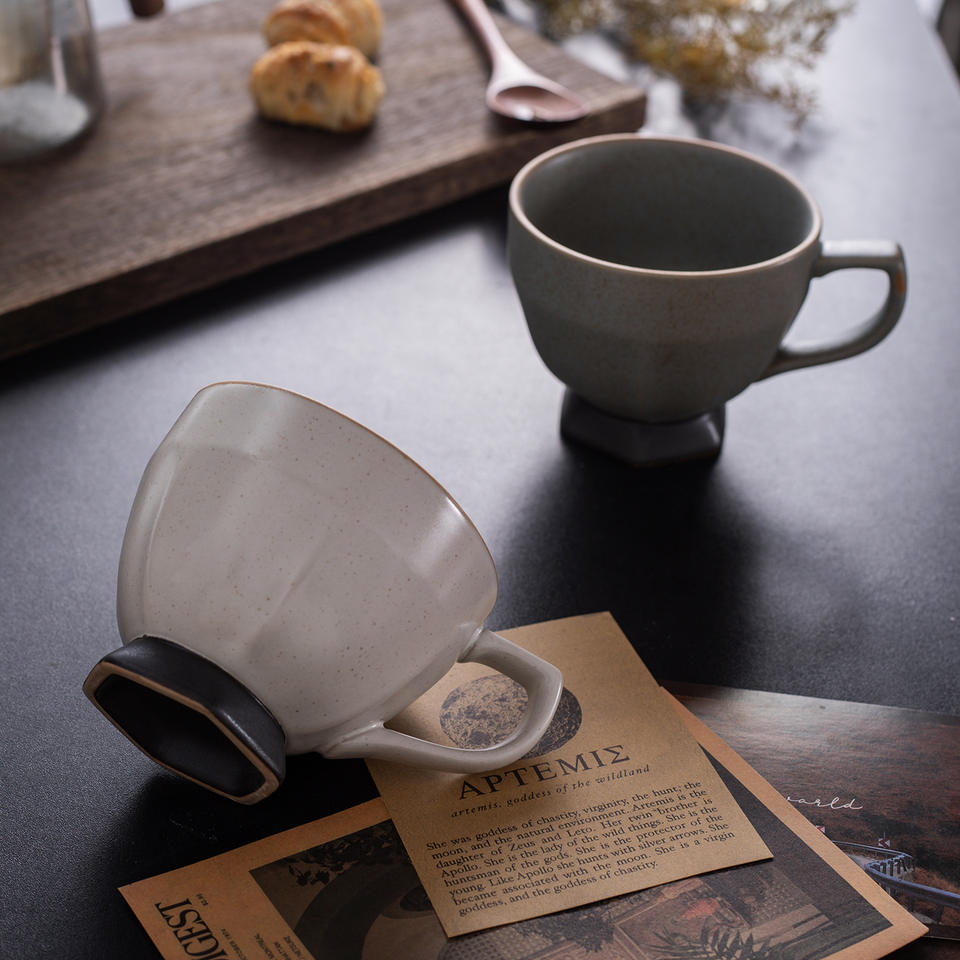 Cross Border Export Ceramic Mug Apricot Gray Stemmed Glass With Handle Minimalist Kiln Fired Glaze Coffee Tea Cup Single
