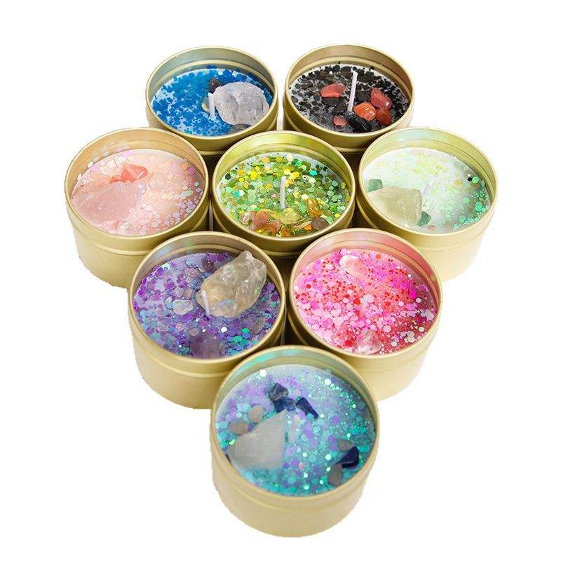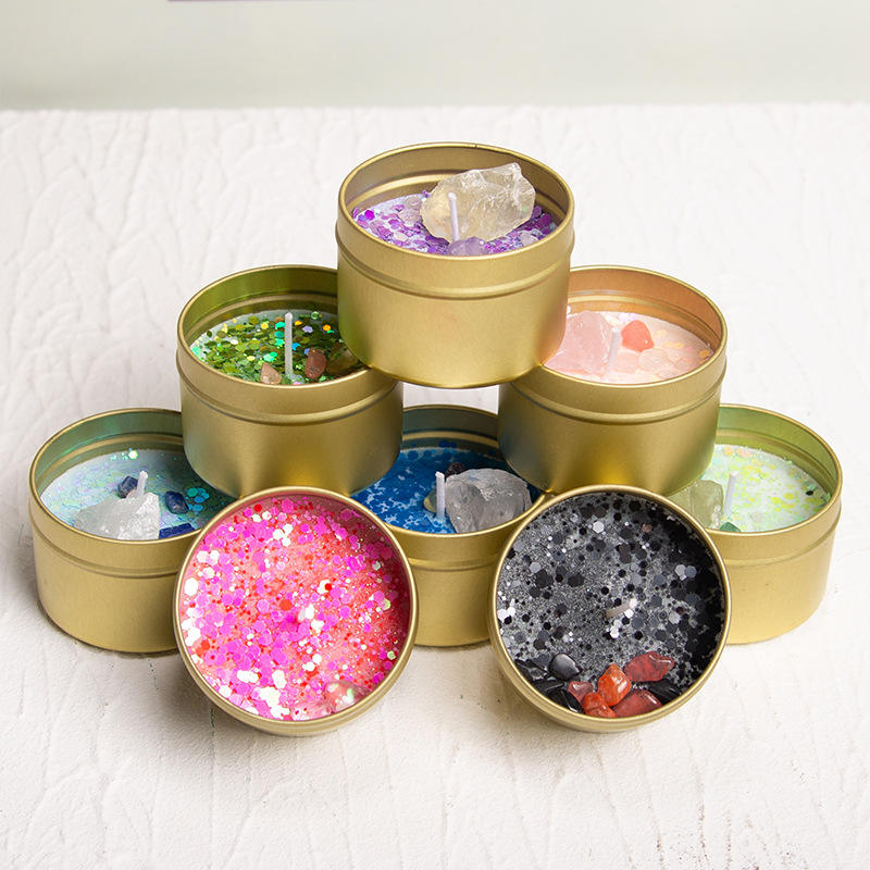 Cross-Border Hot Selling Box Aromatherapy Home Decoration Ornament Soybean Mixed Wax Tin Can Lid Stone Incense Fragrance Candle
