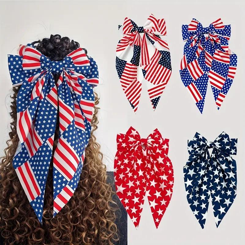 Cross-Border North American Independence Day Ribbon Bow Hairpin Satin Hair Rope American Flag Hairband Spring Party Decorations
