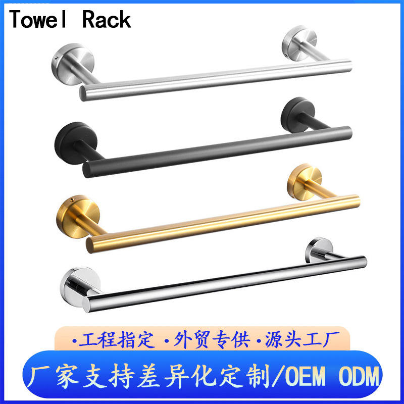 Cross-Border Stainless Steel Wall-Mounted Bath Towel Rack Set Punch-Free Towel Ring with Hook Convenient Bathroom Storage