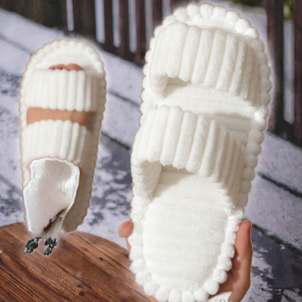 Christmas Home Slippers Christmas New Year With Furry Inside