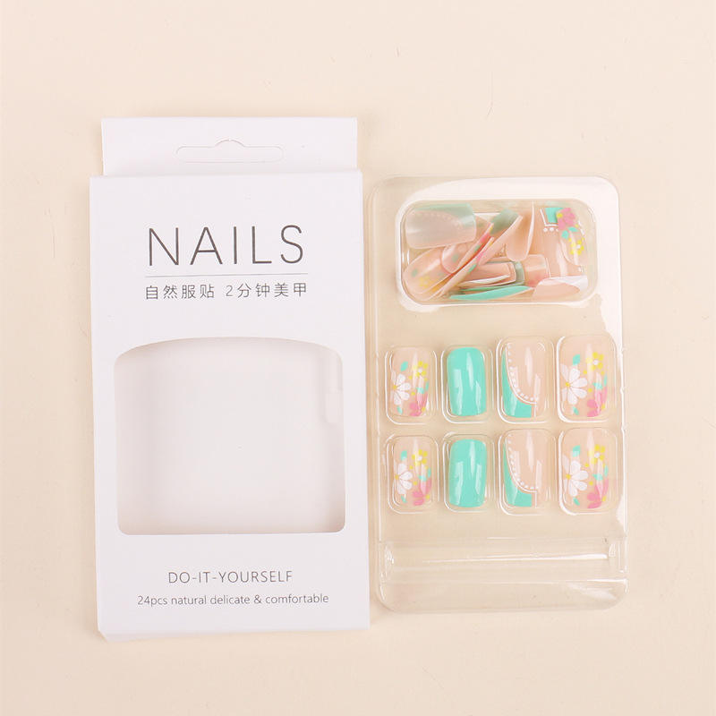 Cross-Border Wearable Nails Wholesale Colorful Small Flower French Manicure Tips Finished European and American Sweet Cool Hot