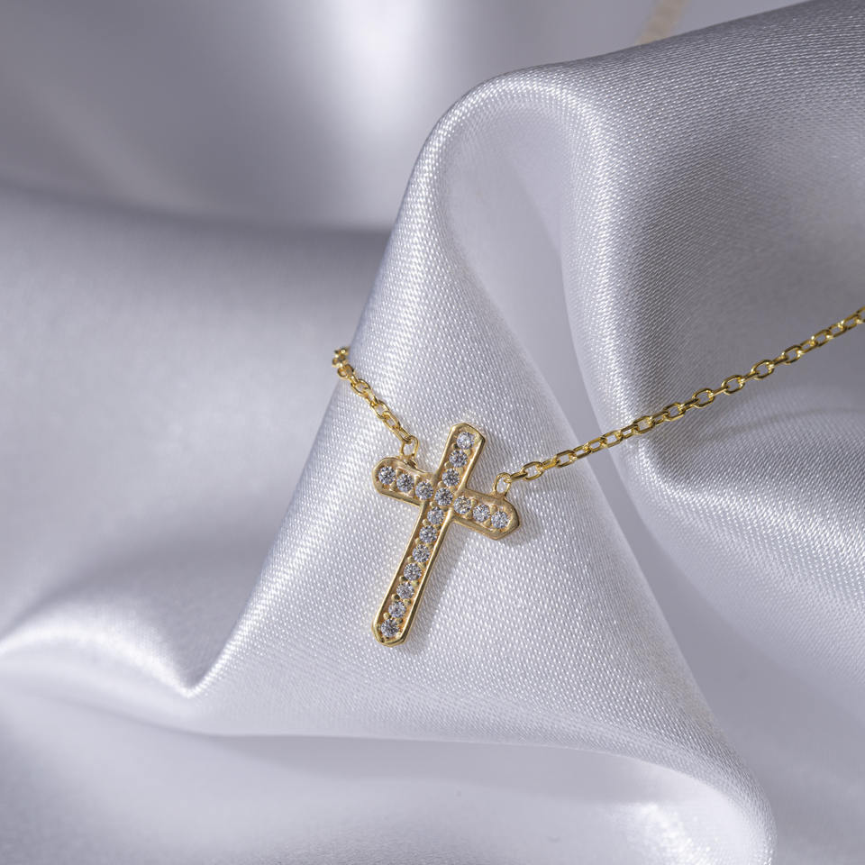 Cross Design Zircon Stone Charm Necklace Woman Pendant Turkish Handmade Wholesale Silver Jewelry