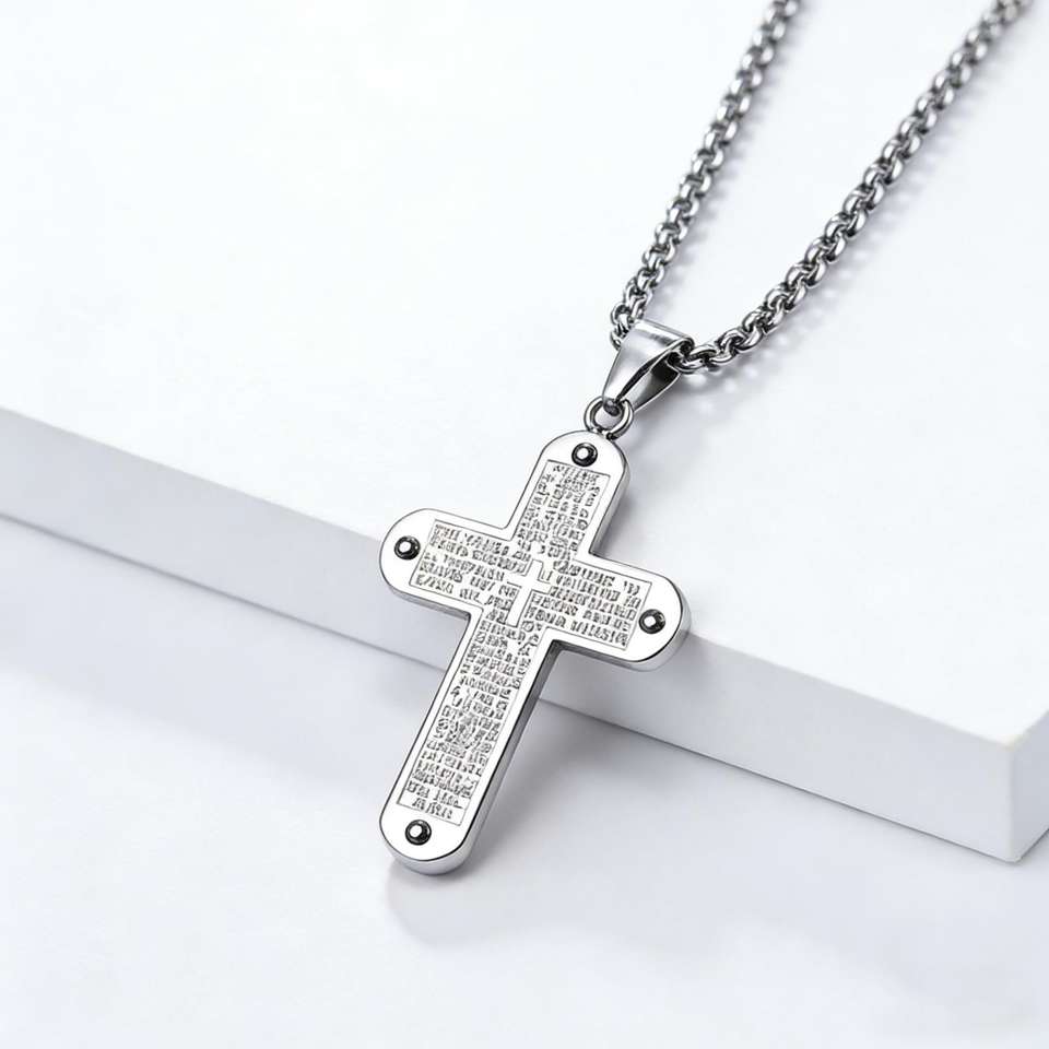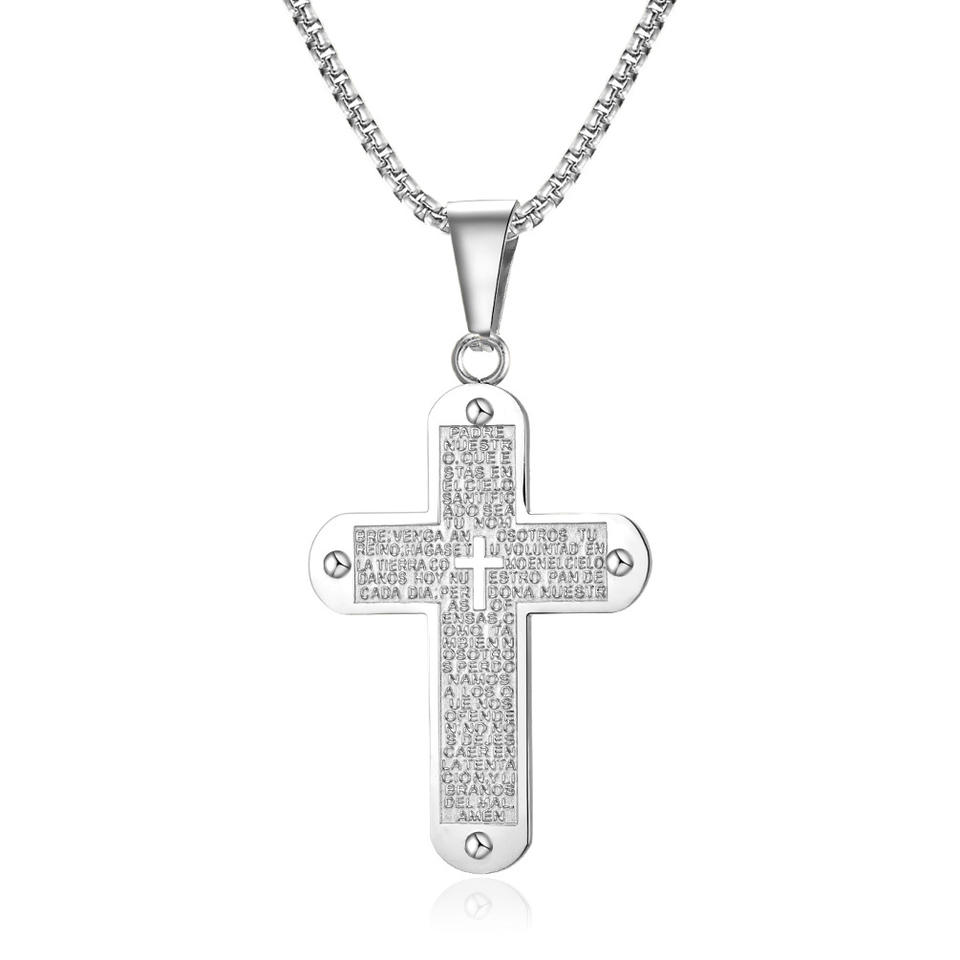 Cross Scripture Titanium Steel Necklace Stainless Steel Cross Pendant Unisex Everyday Wear Gold Black Silver Chain