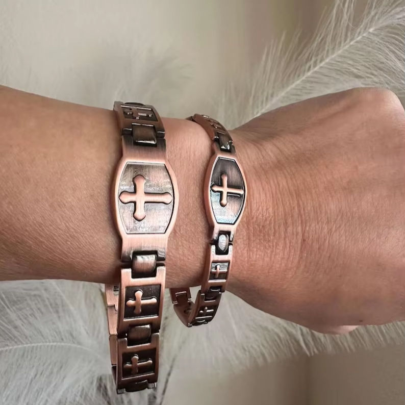 Cross Solid Copper Magnetic Therapy Bracelet Men Renew Energey Balance Power Strength Enhance Peace Calm Joy
