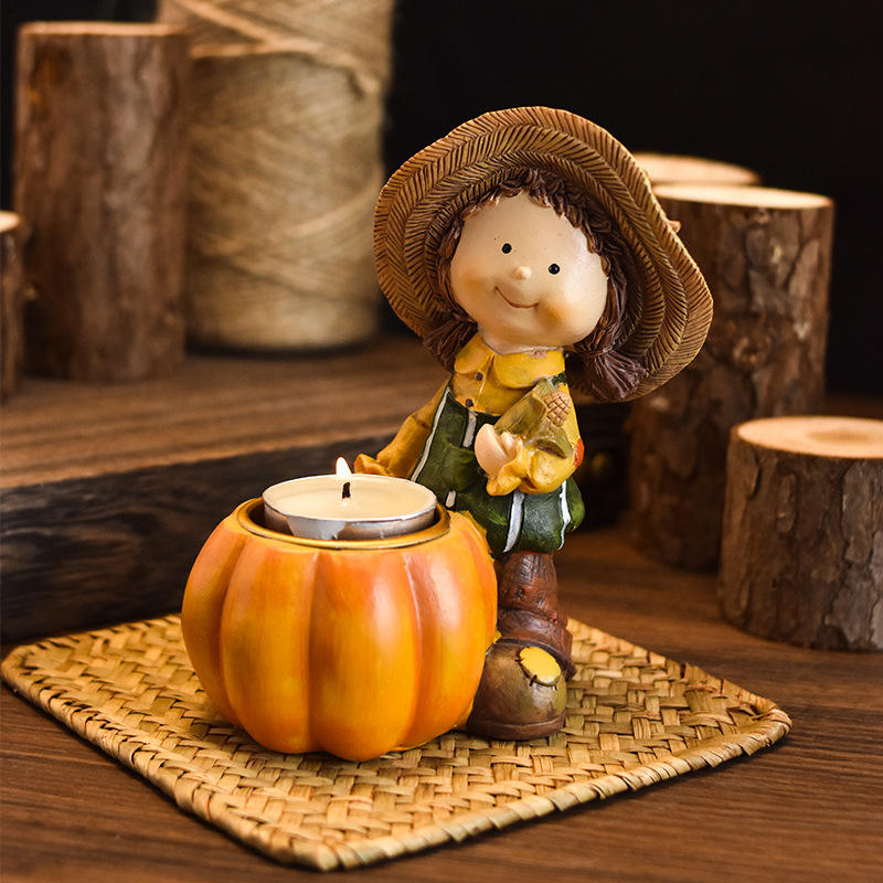 Cross-border Creative Harvest Festival Pumpkin Resin Crafts Pastoral Style Home Tabletop Garden Girl Ornament