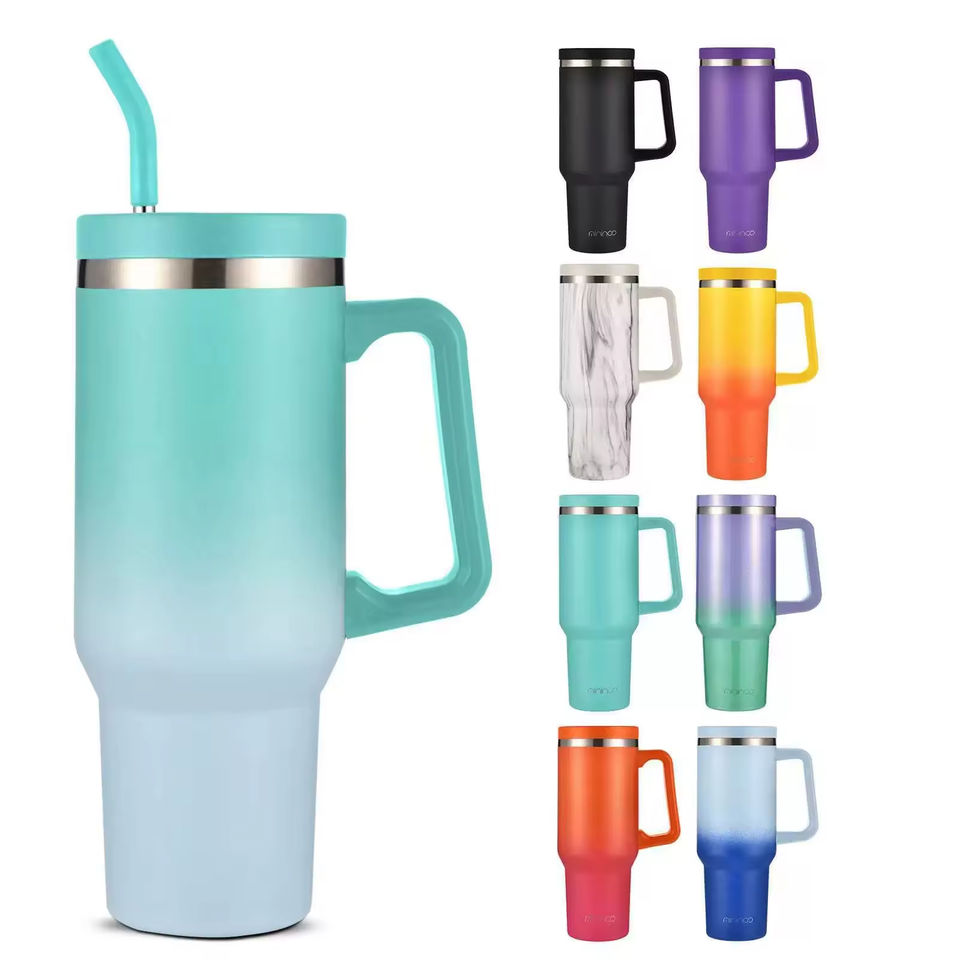 Cross-border Exclusive 40oz Stainless Steel Large-Capacity Vacuum Insulated Car Tumbler Handle Straw Cup Car Mount Party Ice