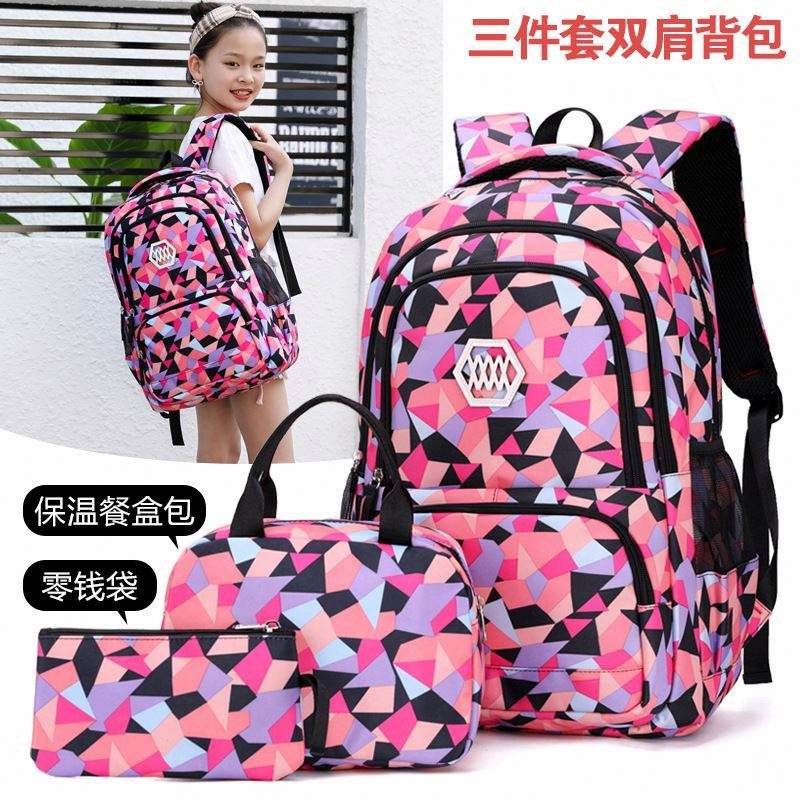 Cross-border Three-piece School Bag Set for Primary School Girls Nylon Camo Junior High School Backpack Light Backpack