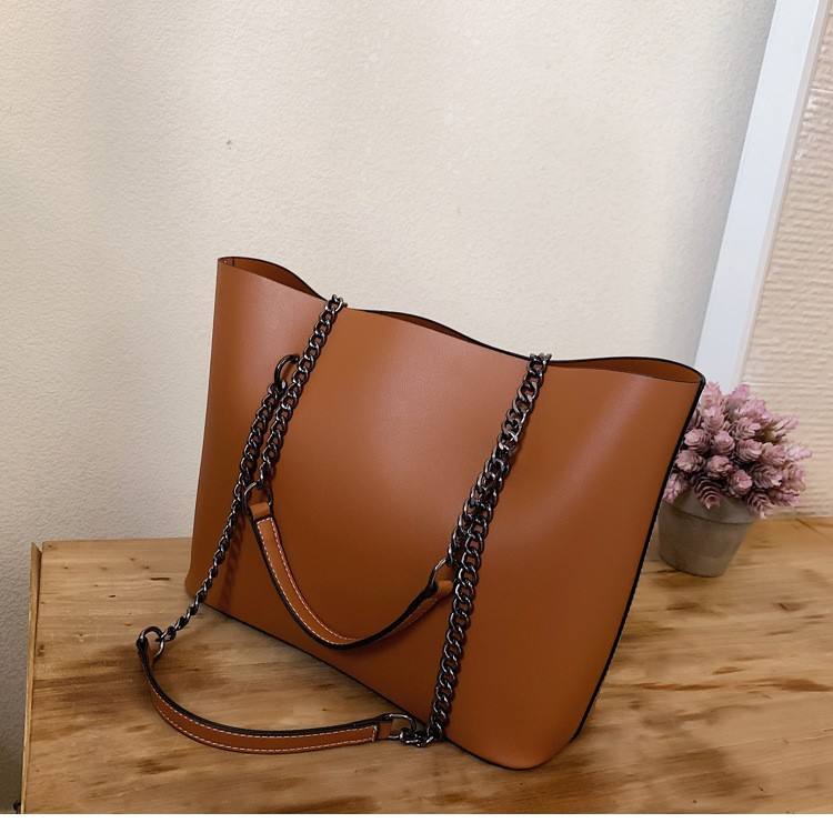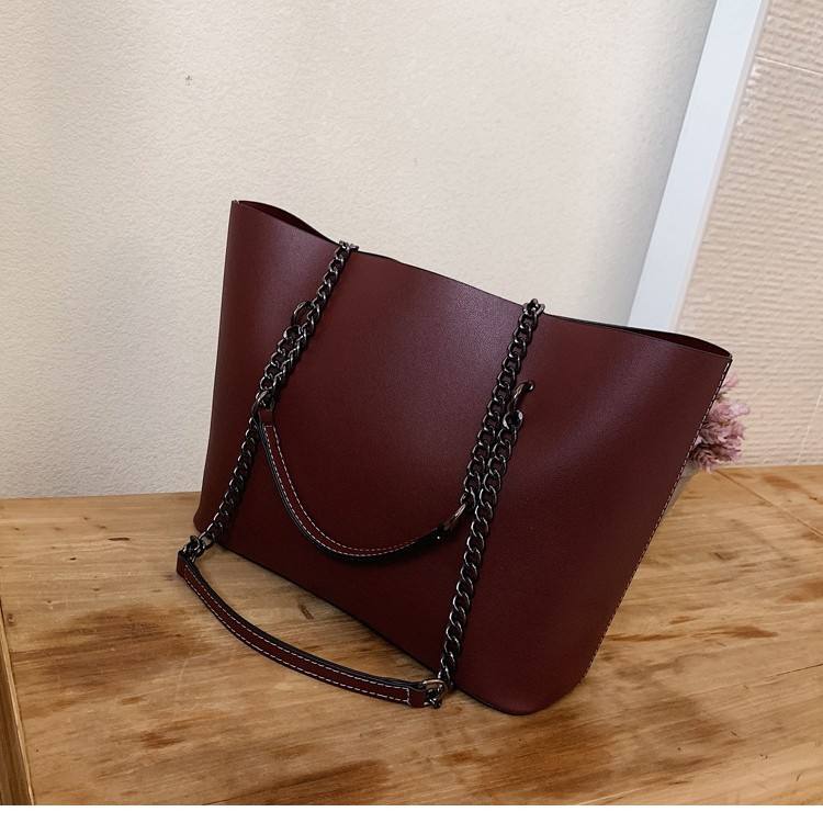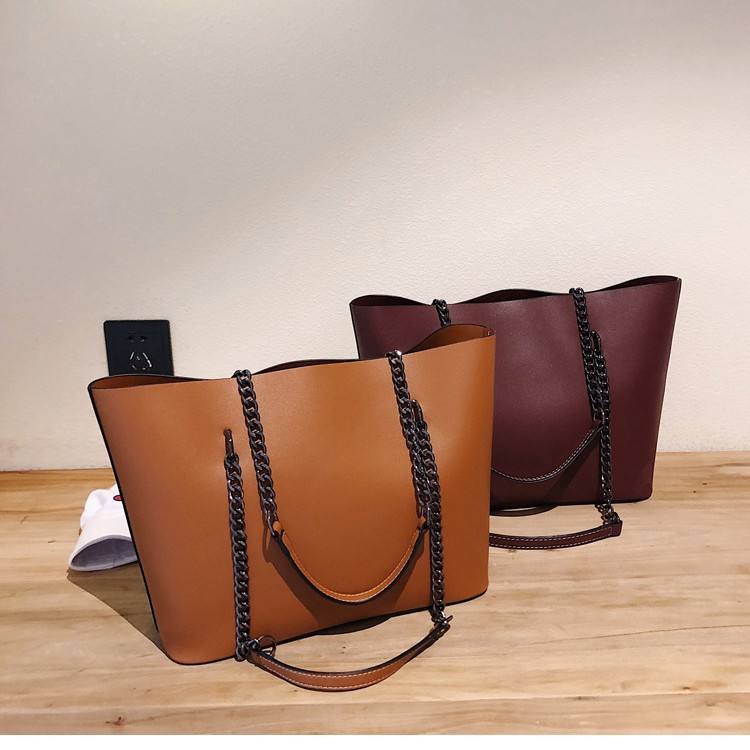 Cross-border Women's Autumn Winter New Large-capacity Retro PU Tote Bag High-end Simple Chain Hand Carry Single-shoulder