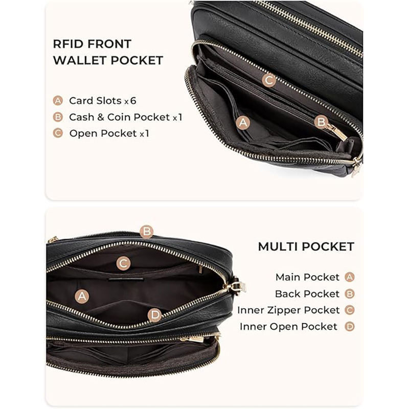 Crossbody Bags for Women RFID Vegan Leather Travel Purse Small Shoulder Handbags with Built in Wallet Phone Bag