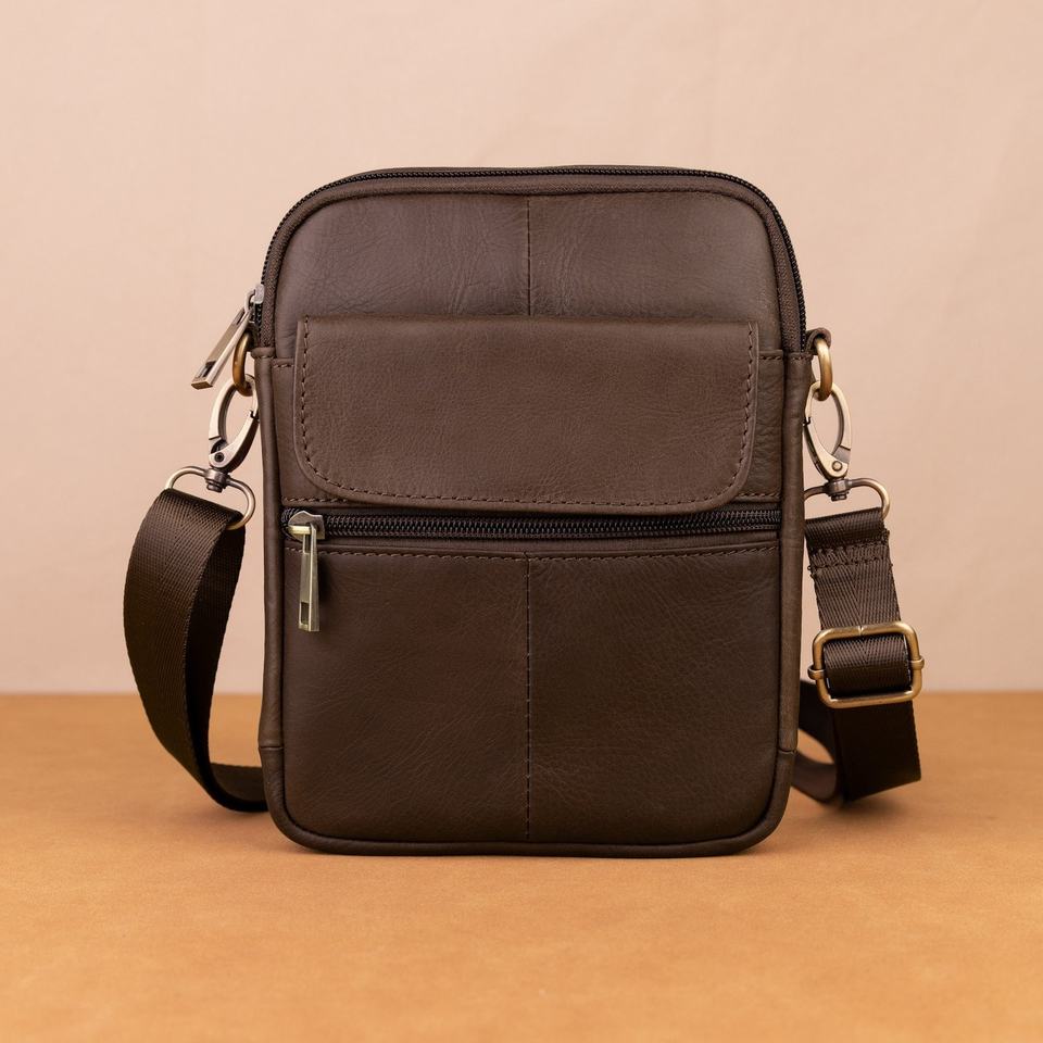 Crazy Horse Leather Men's Crossbody Laptop Messenger Handbag Bag LCS-0050C with Zipper Closure