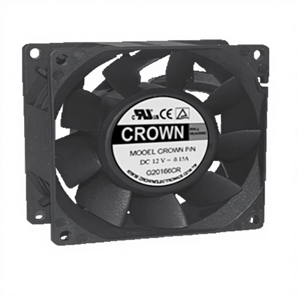 Crown AGQ08038_12L DC Duct Axial Fan with Ball Bearing Electric Power OEM Customizable Plastic Blades for Industrial Use