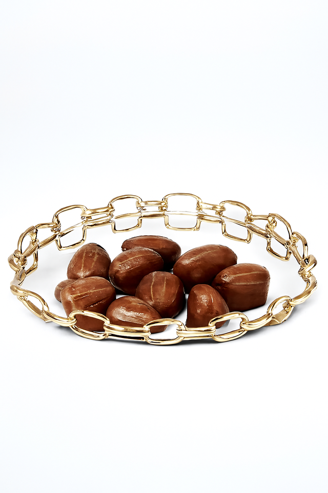Crown Design Golden Tray for Chocolate Sweets Dates Round Elegant Platter for Eid Ramadan Dry Fruit Gift Display Use