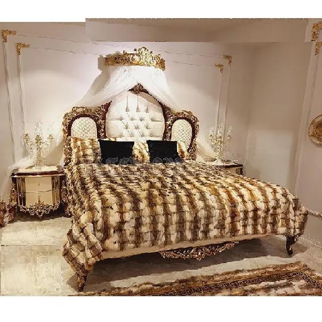 Crown Style Hand Carved Bed With Nightstand Maharaja Style Bedroom Furniture Set Royal Look Hand Carved Bed With Nightstands