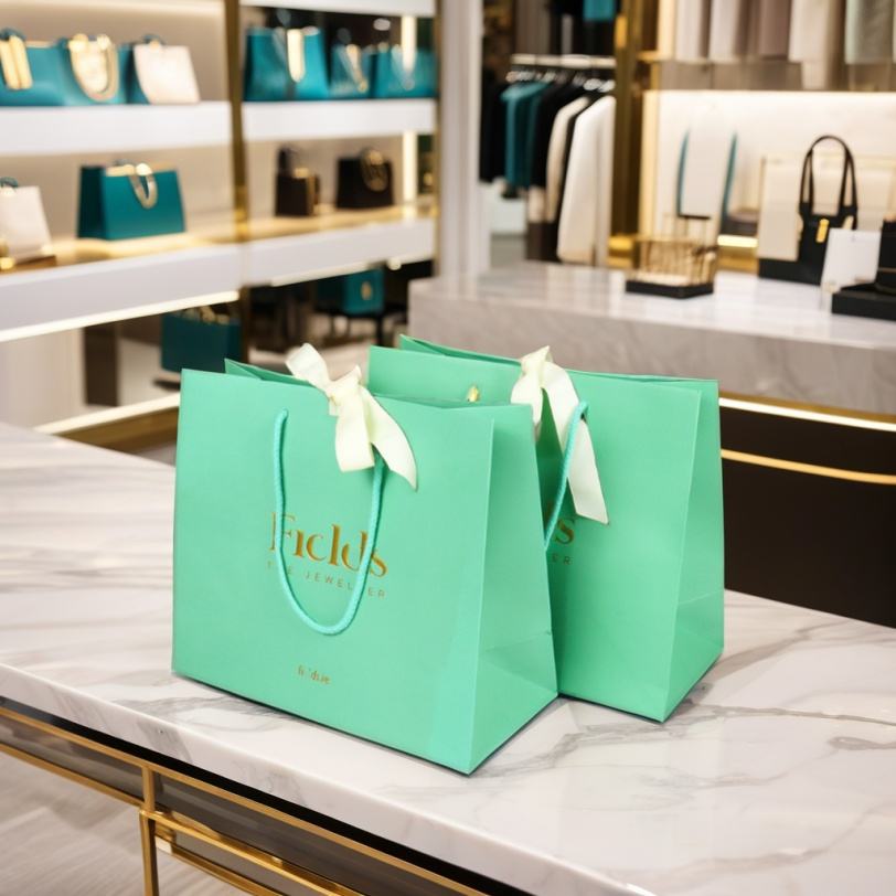 Crown Win Custom Emerald Green Corrugated Board Bags Gold Stamping UV Coating Ribbon Rope Matte/Glossy Lamination Sponge