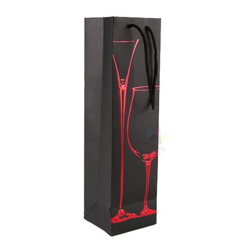 Crown Win Custom Logo Tall Cardboard Paper Bag Hot Stamping Clear Window Ribbon Accessory for Tea Beer Take-Away Shopping Bag