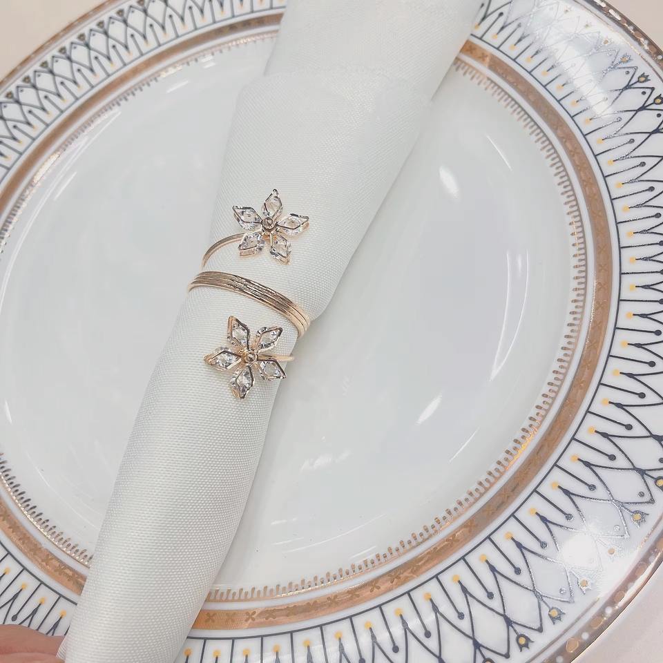 Crystal And Metal Flower Metal Tissue Paper Rings Premium Quality Customized Size Shape Napkin Rings For Home Hotel Use