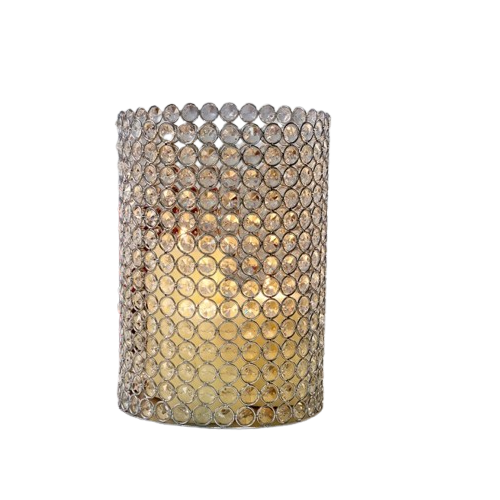 Crystal Bead Pillar Candle Stand for Bedroom Decoration Cylinder Shape Fancy Table Top Decoration T Light Crystal Candle Holder
