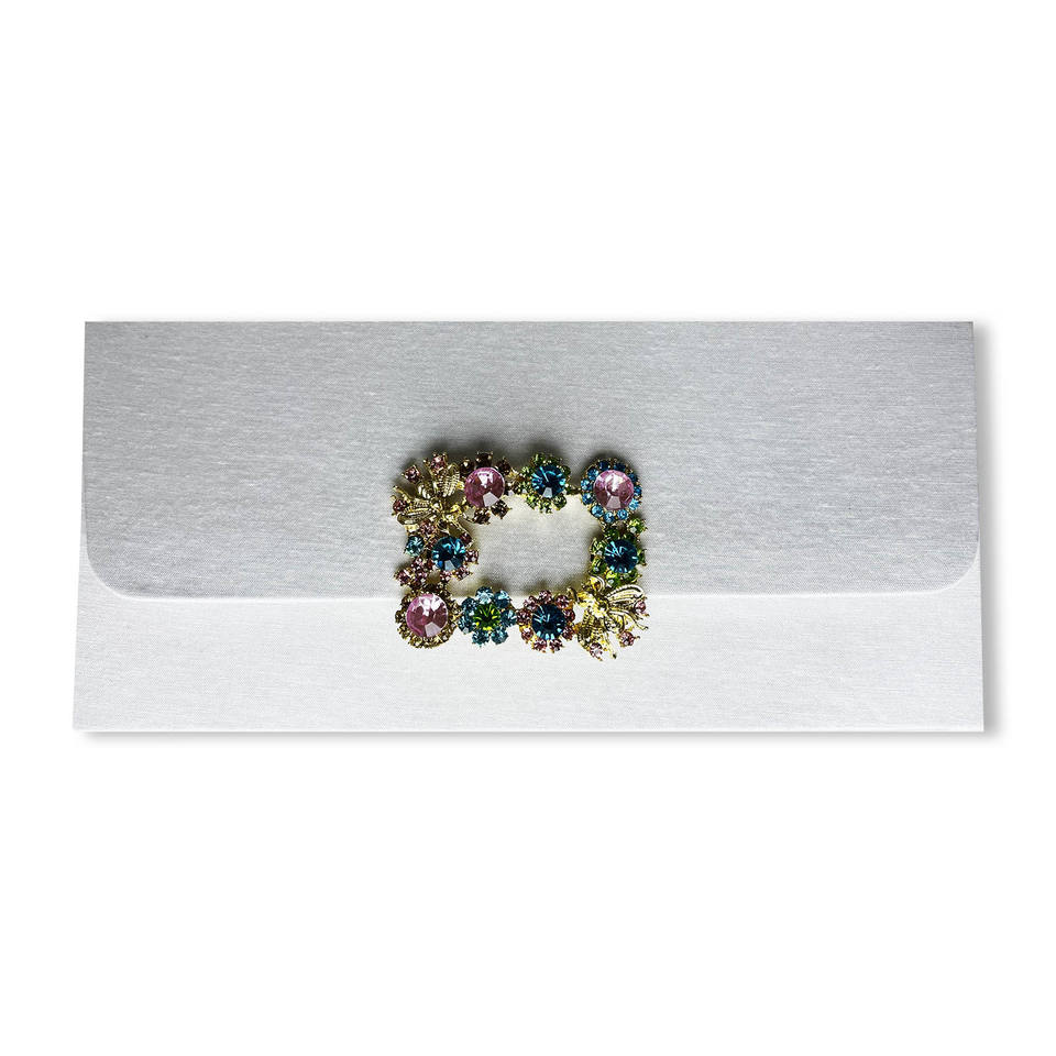 Elegant White Silk Money Envelope Brooch Crystal Embellished Paper Crafts Product
