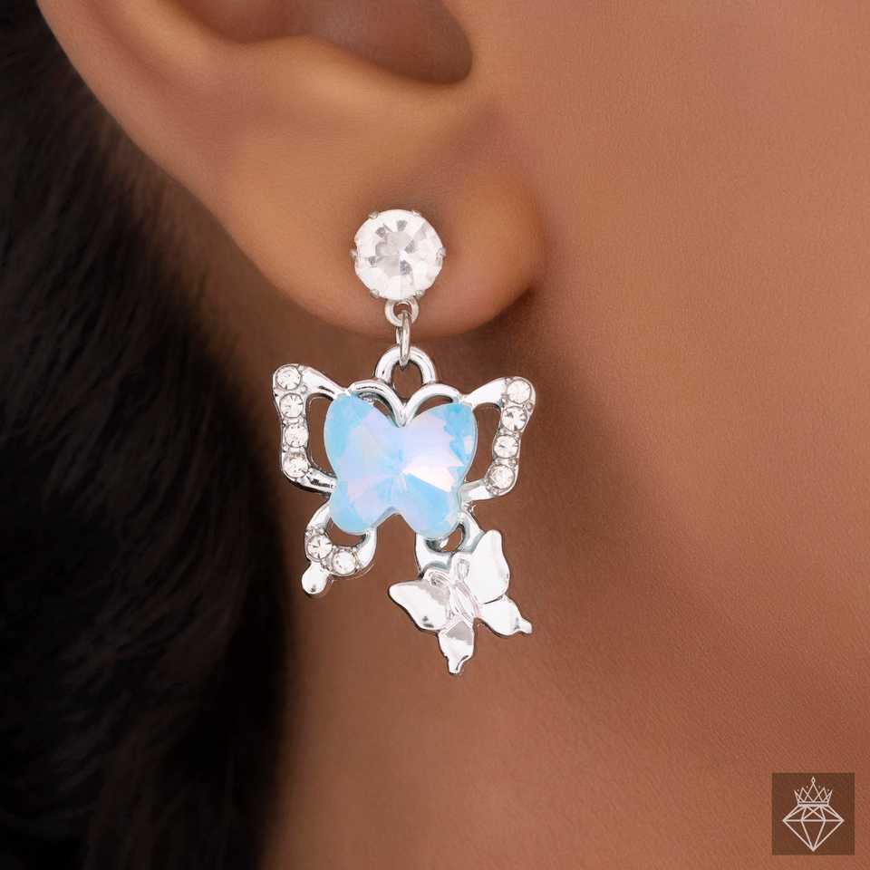 Crystal Butterfly Fashion Jewelry Set Anti-Tarnish Necklace and Earrings