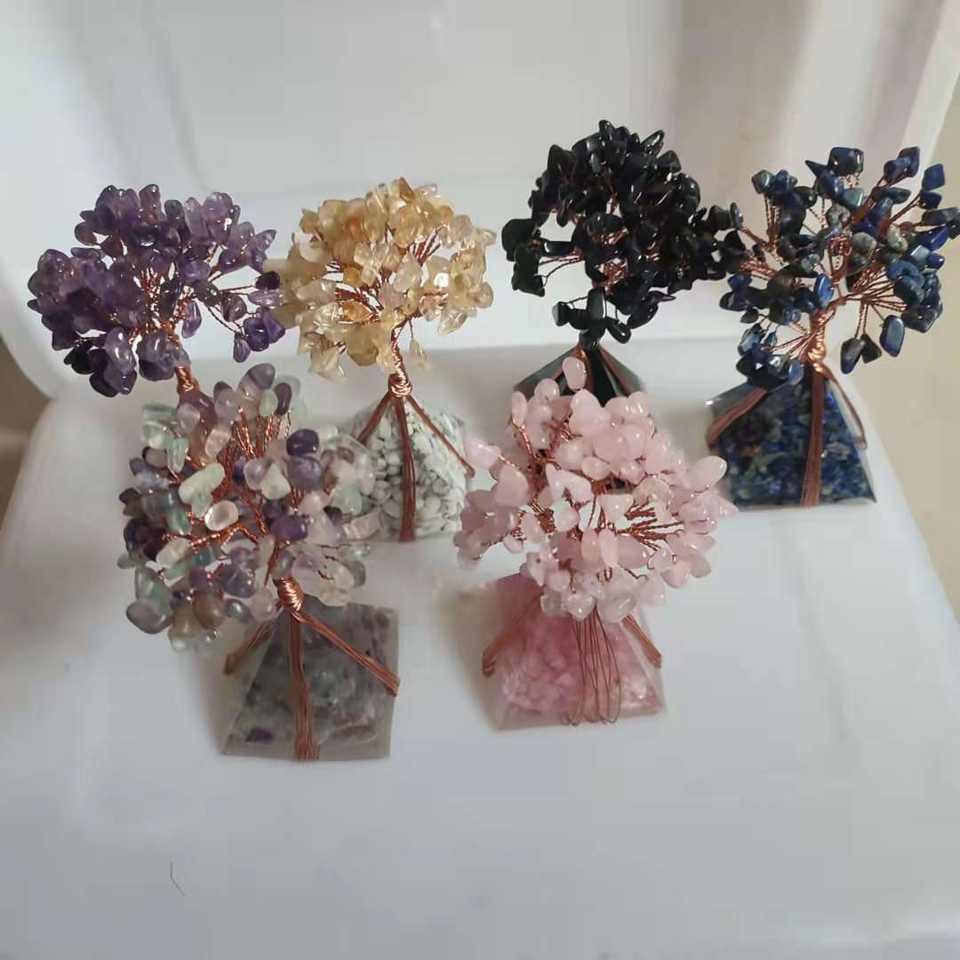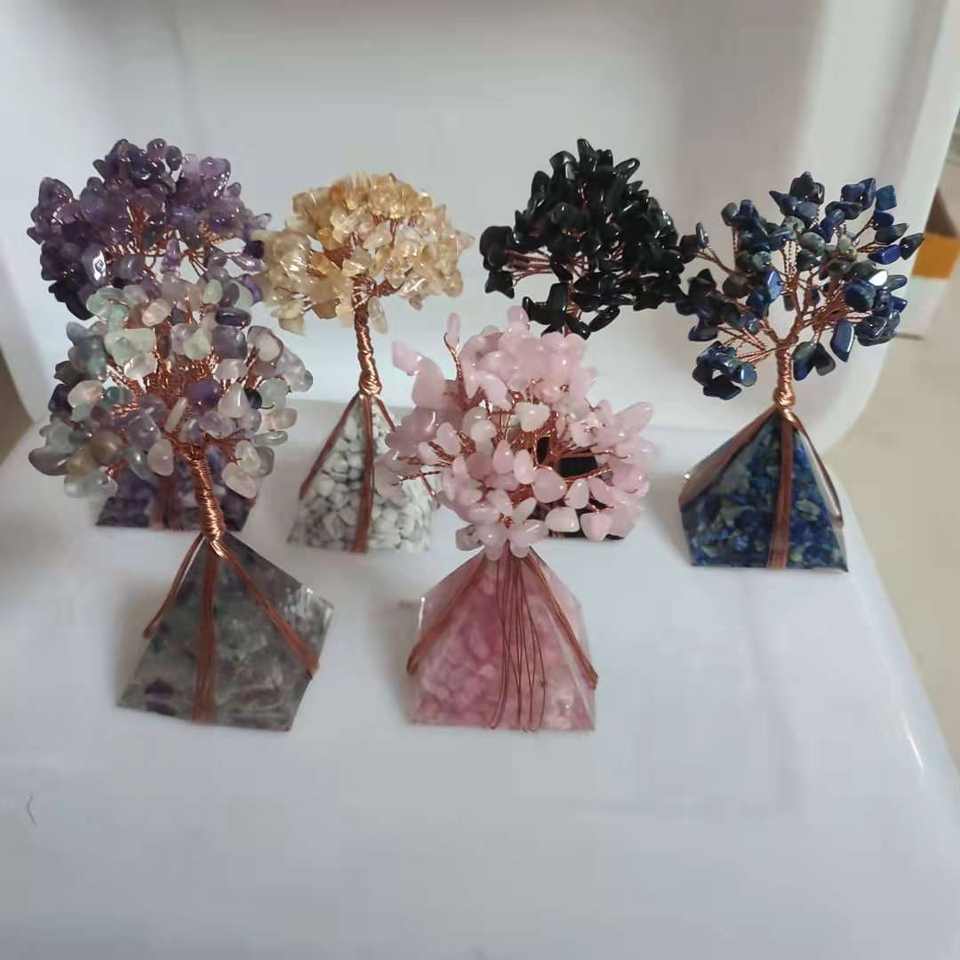 Crystal Chip Money Tree Pyramid Shape Five Colors Home Office Decoration Ornament