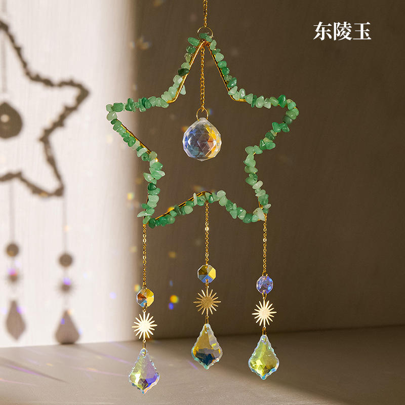 Natural Crystal Carved Engraved Pentagram Sun Catcher Ball Wind Chime Christmas Love Theme Decoration