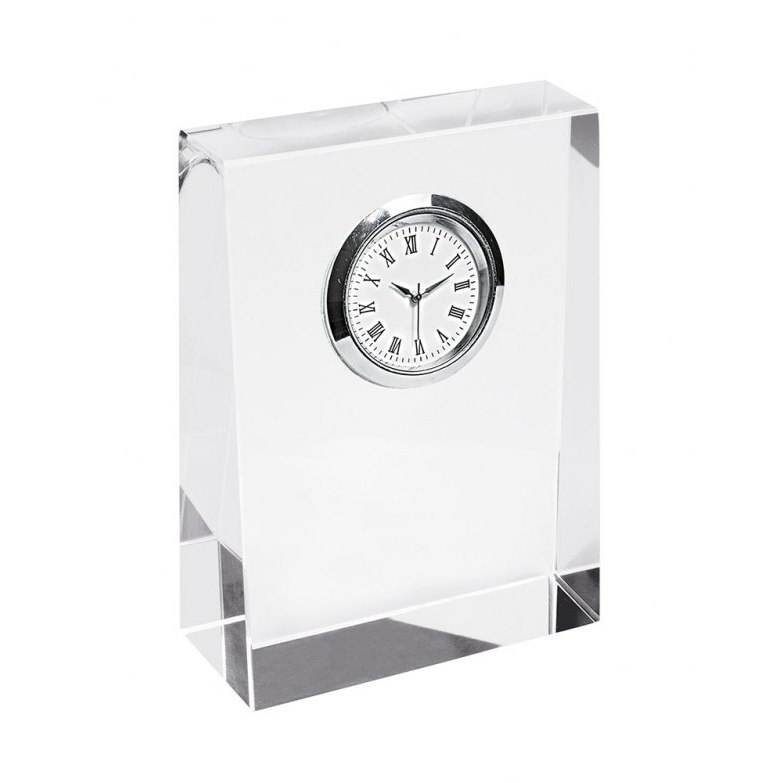 Crystal Desk Clock 100X75X30 Mm With Roman Numerals Silver Frame
