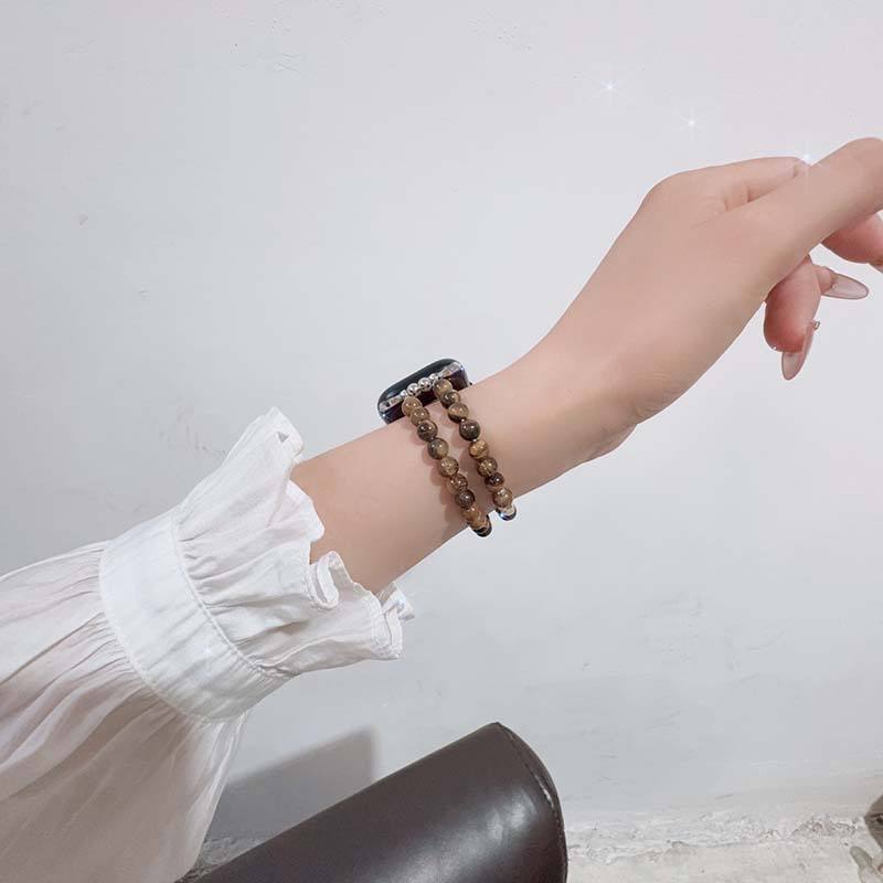 Crystal Energy Apple Watch Band Elastic Strap for iWatch Series 10/9/8/7, Tiger Eye Gemstone, Fashion Bling Replacement Bracelet