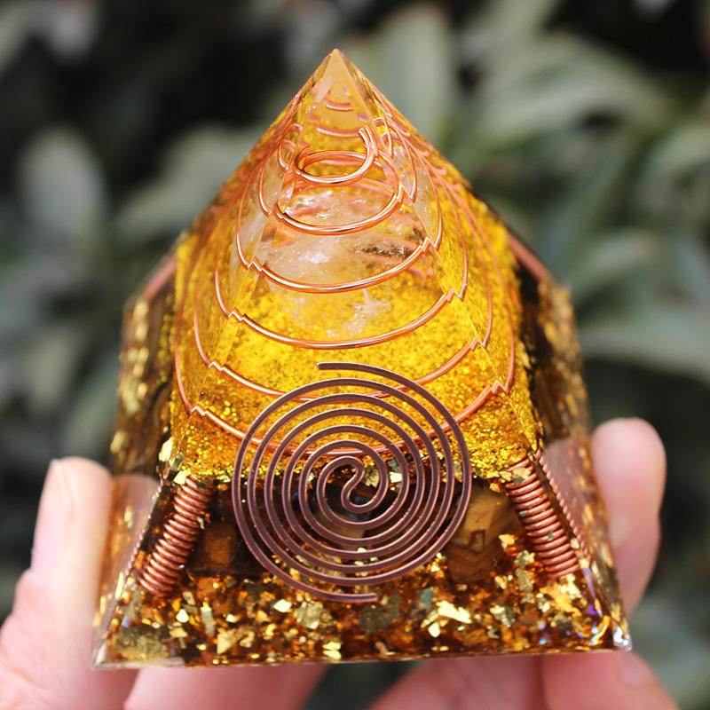 Crystal Epoxy Pyramid 6 Cm Handmade Resin Craft Copper Wire Spiral Home Decoration Desktop Ornament