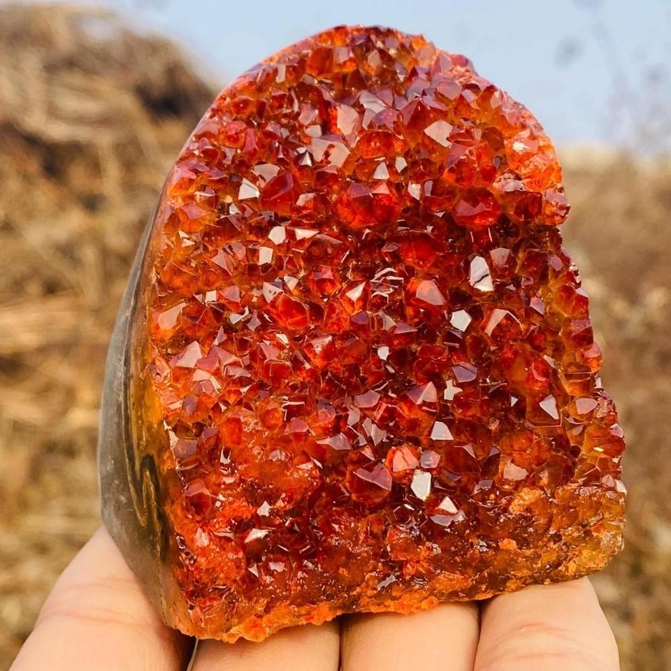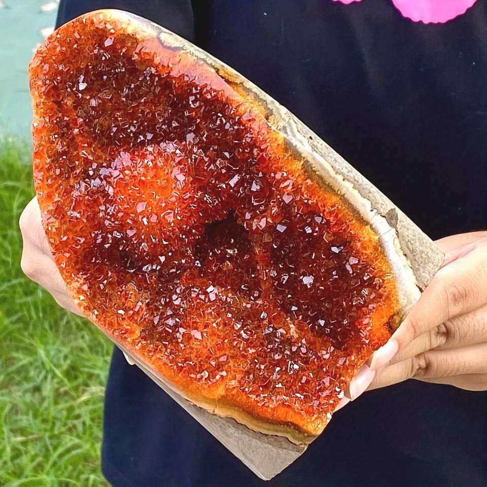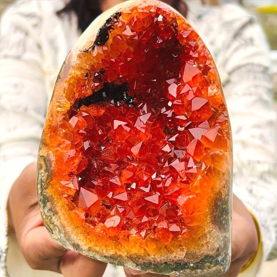 Crystal Freeform Anniversary Healing Crystal Gift Orange Geode Rocks Quartz Mineral Cluster Handmade Floral Pattern Collectible