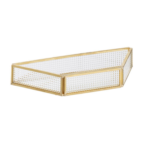 Crystal Glass Decorative Gold Metal Framed Tray Organizer for Women Jewelry and Makeup Accessories Christmas Decor Organizer
