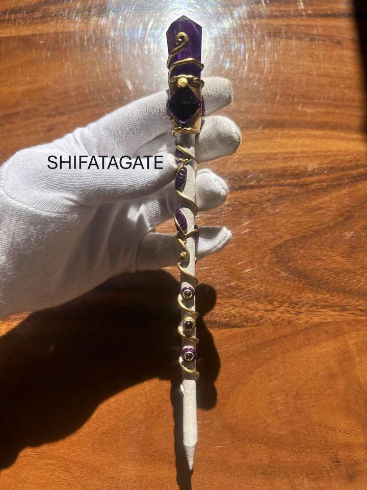 Crystal High Quality Crystal Magic Wands Natural with Amethyst Point for Wedding Handmade Stone Carved Folk Art,feng Shui