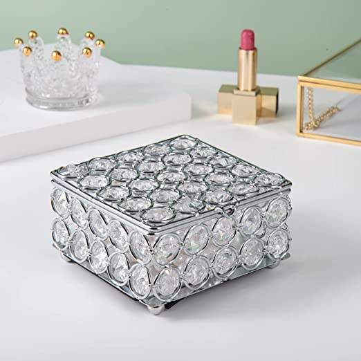 Crystal Jewelry Box With Feet Home Dressing Table Decorated Diamond Beaded Jewelry Storage Box