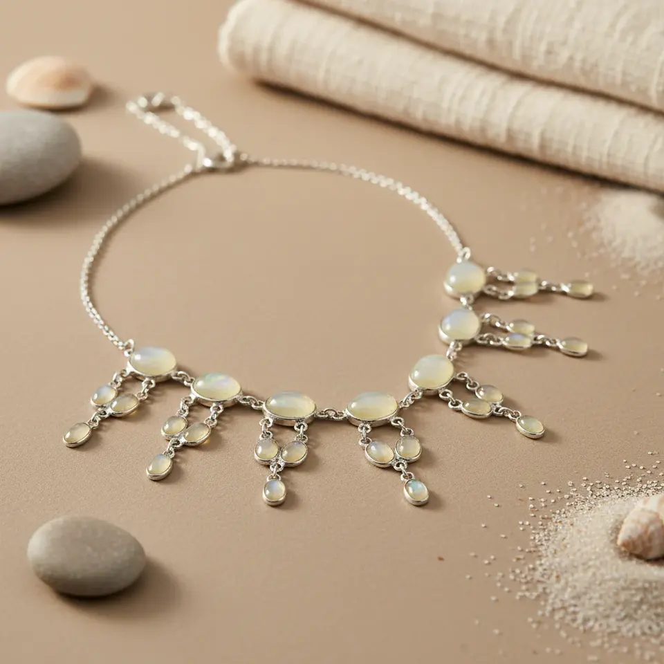 "Crystal Moonstone Silver Dangle Necklace for Women's Gift"