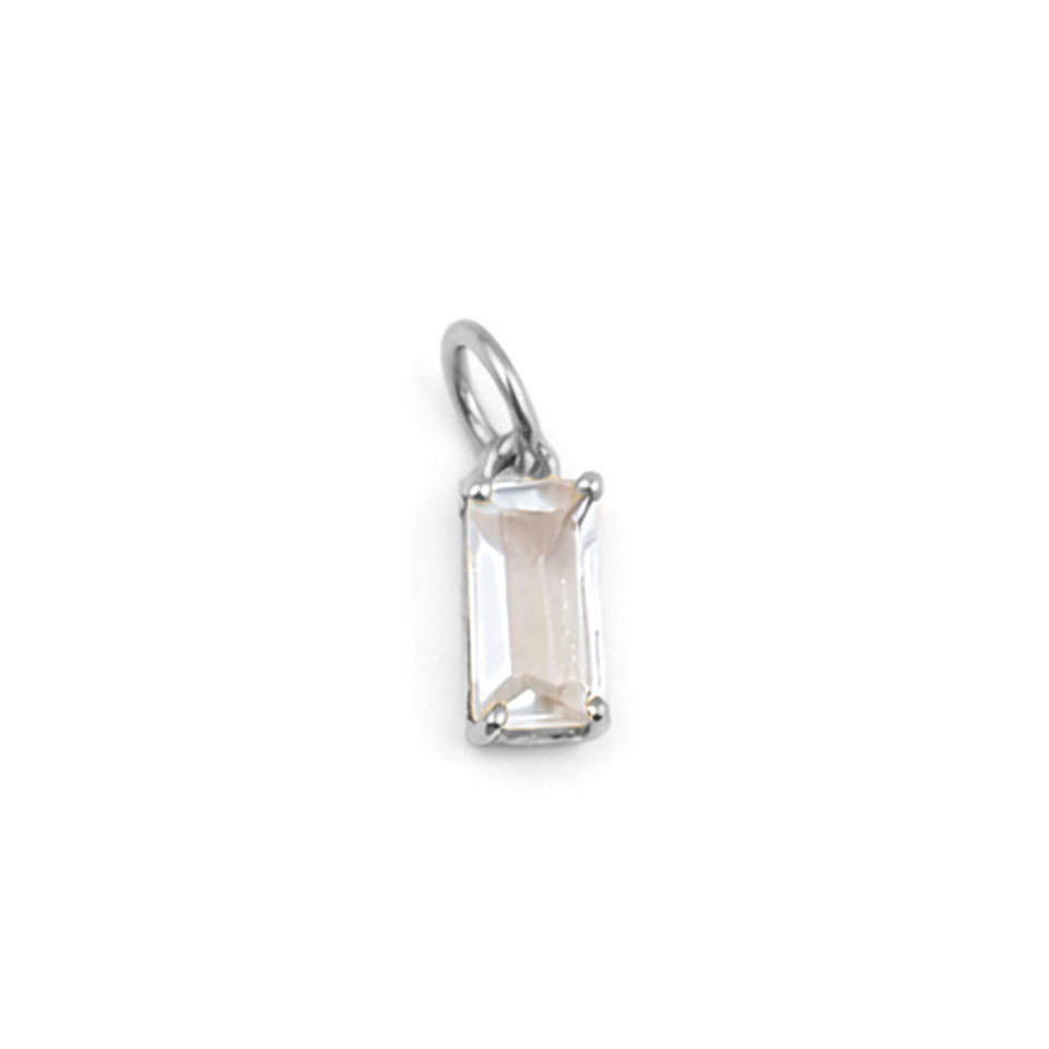 Crystal Quartz Baguette Shape Gemstone Charm Rectangular Natural Stone Silver Plated Pendant Jewelry for Necklace and Earring