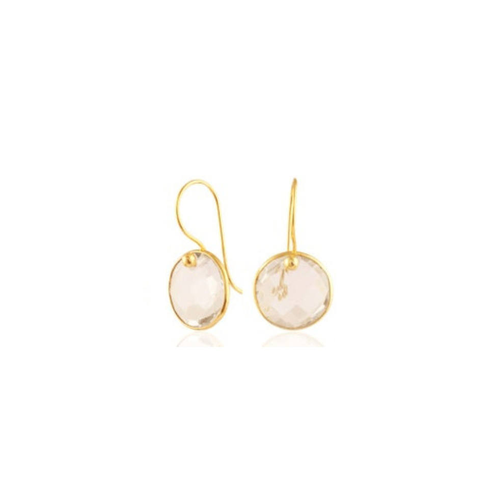 Crystal Quartz Round Shape Earring, Bezel Set Hoop Earring For Women, 925 Sterling Silver Faceted Gemstone Minimalist Jewelry
