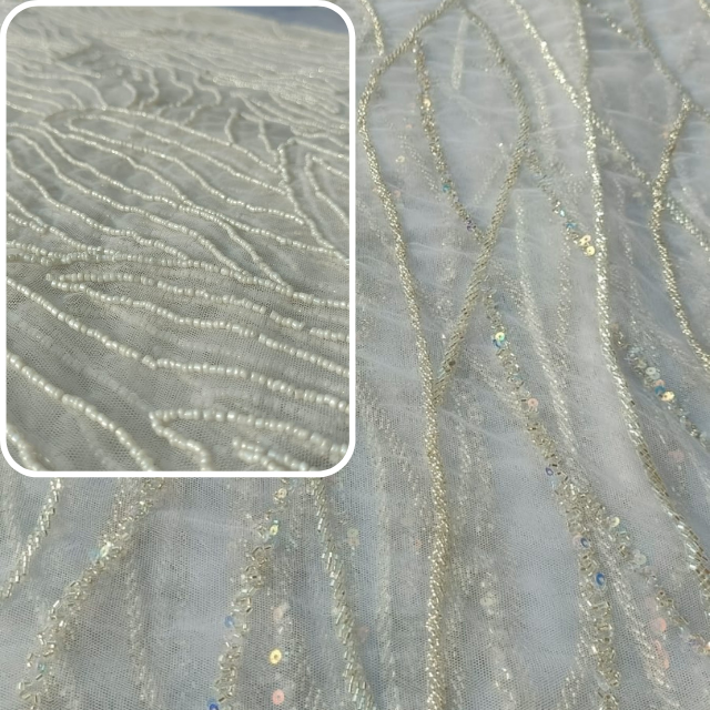 Crystal Sequins Bridal Luxury Embroidery Beads Wedding Tulle White Beaded Lace Fabric