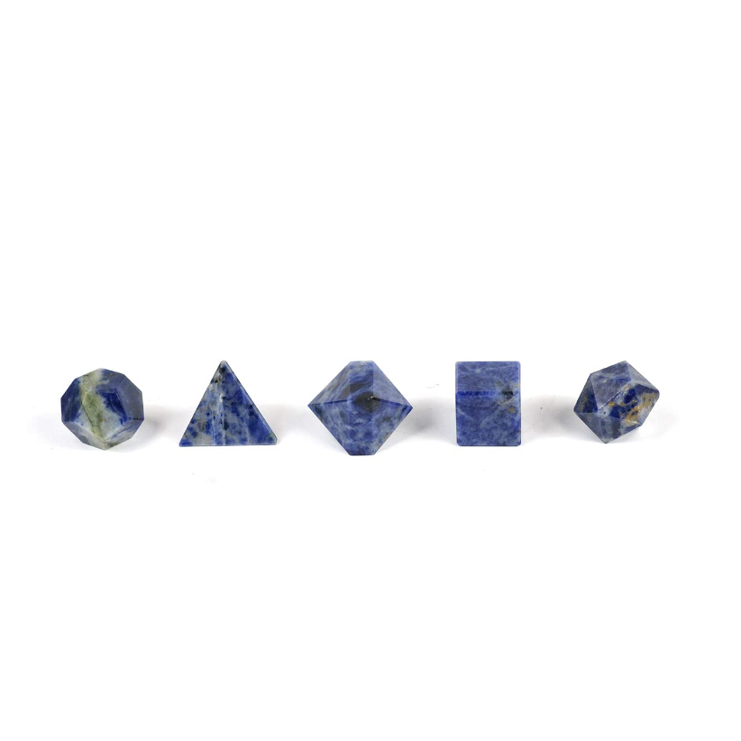 Crystal Sodalite Geometry 5 pieces Set Carved Sacred Natural Stone for Healing Platonic Solids Unique Geometric Forms