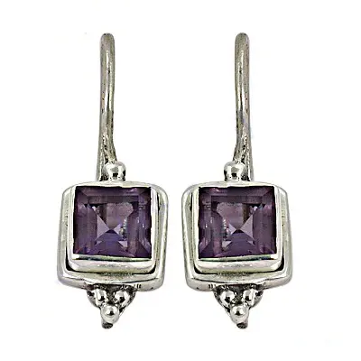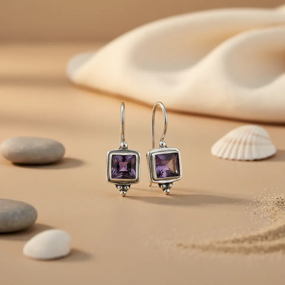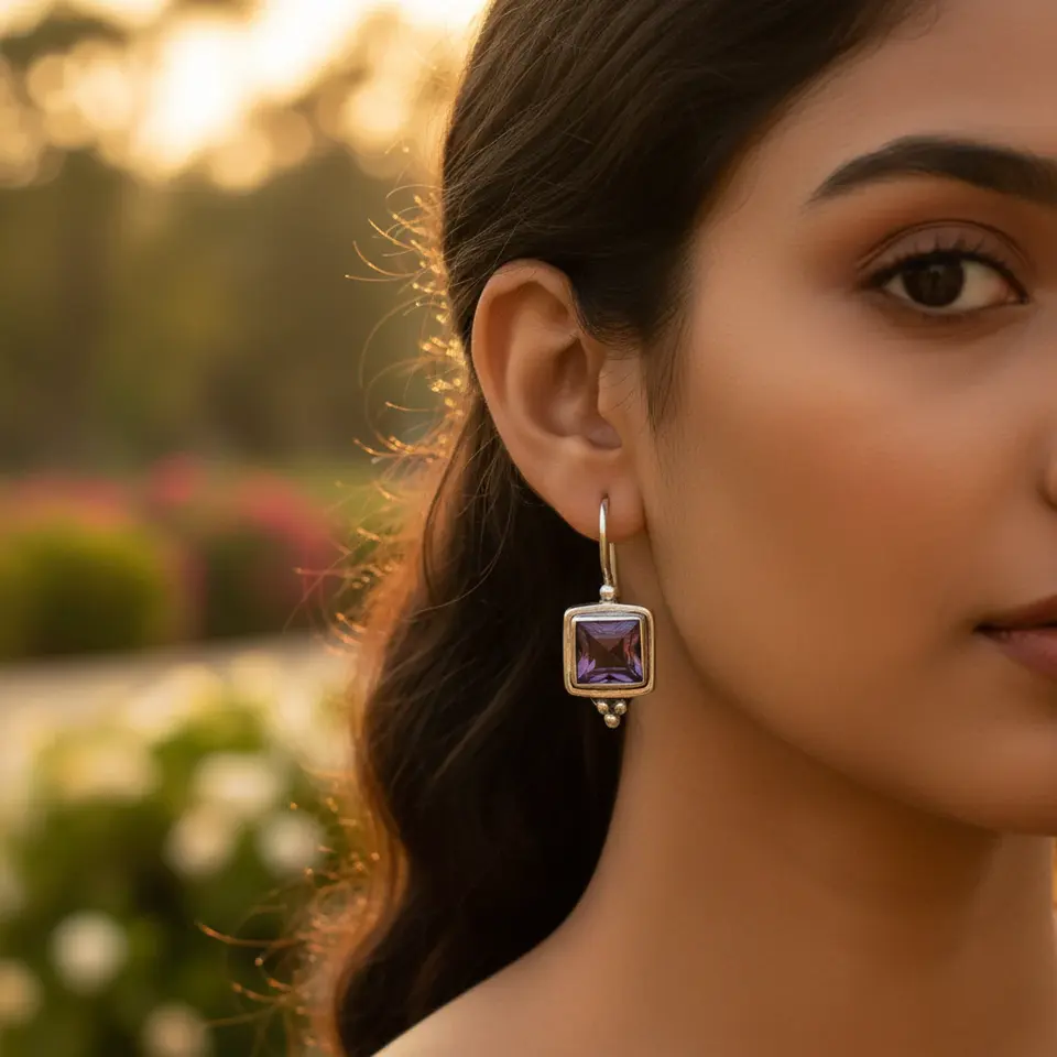 Dangle Earrings,Square-Cut,Bezel-SetStyle