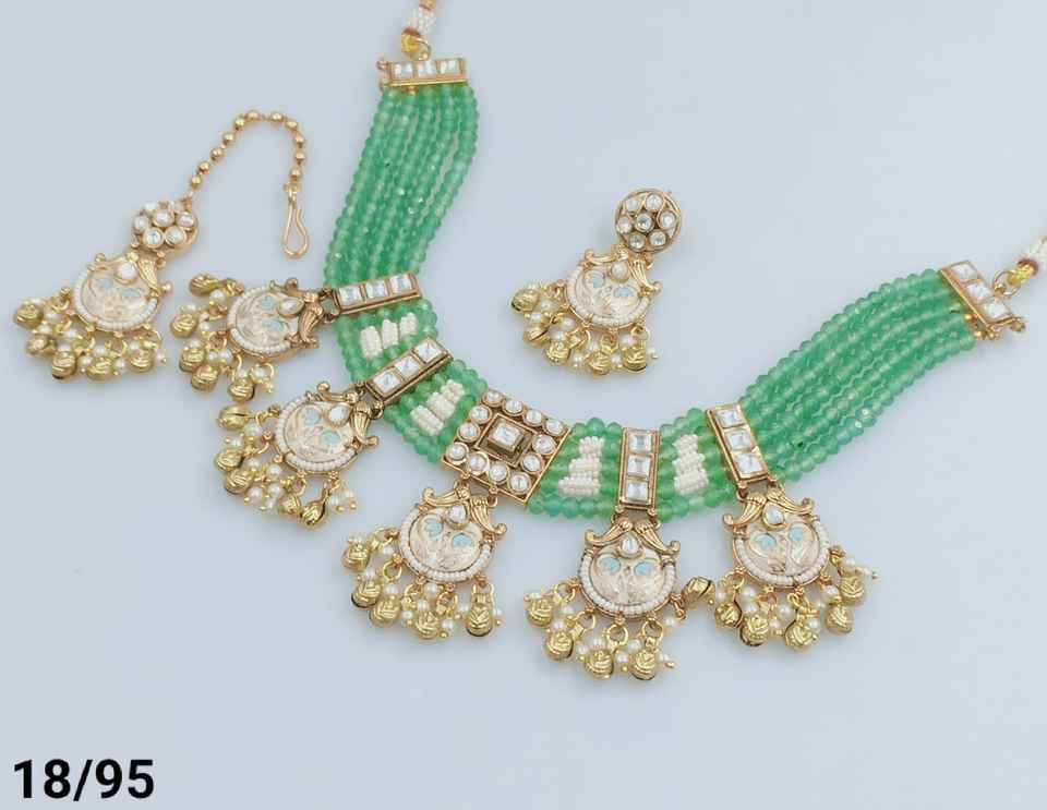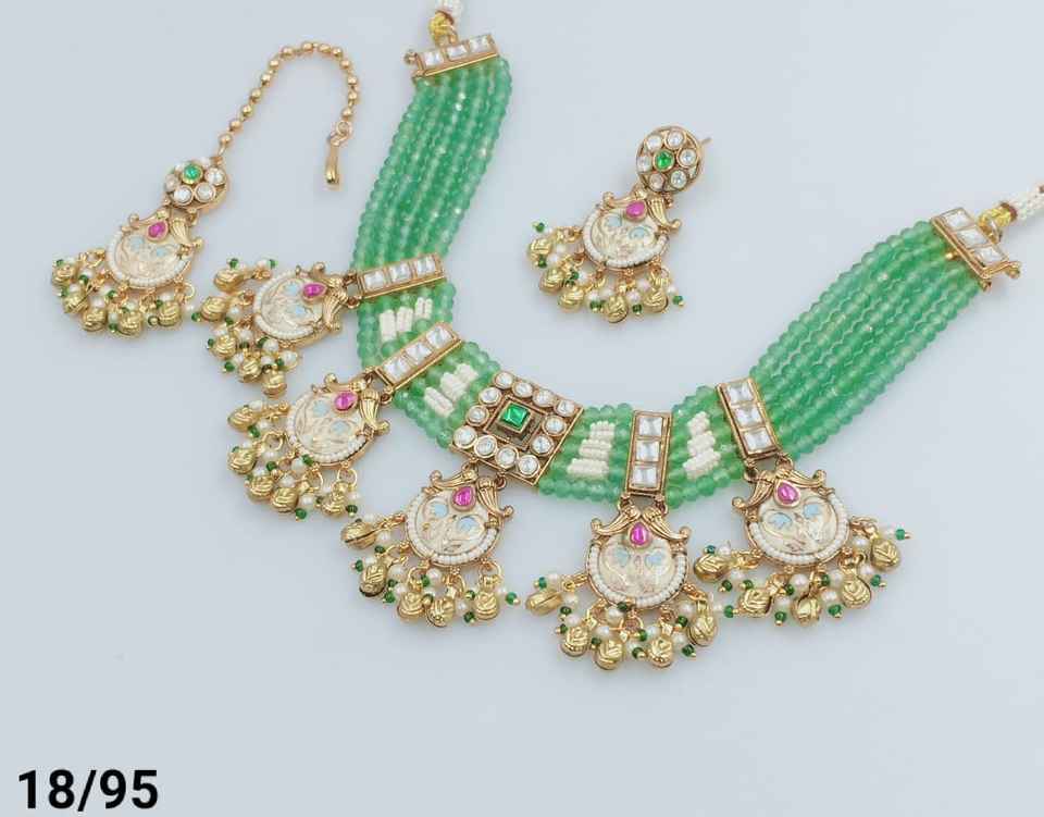 Type:Green Pearl & Kundan Studded Necklace Jewellery Set