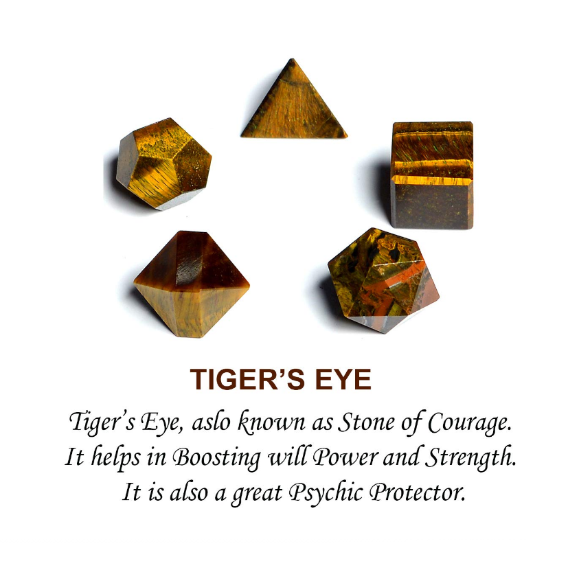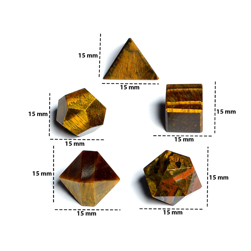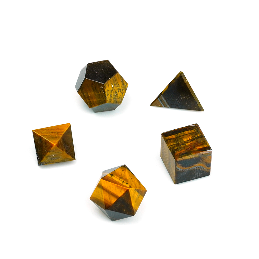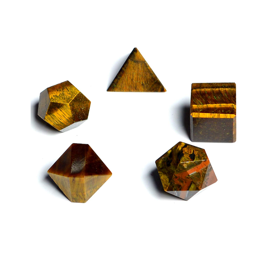 Crystal Tiger eye Geometry 5 pieces Set Carved Sacred Natural Stone for Healing Platonic Solids Unique Geometric Forms