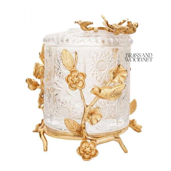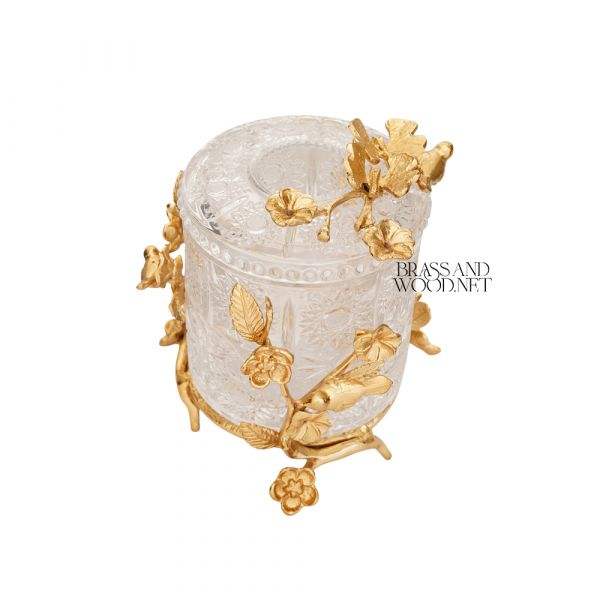 Crystal Tissue Box with Gold Brass Floral and Bird Design Luxury Decorative Tissue Holder for Home Decor
