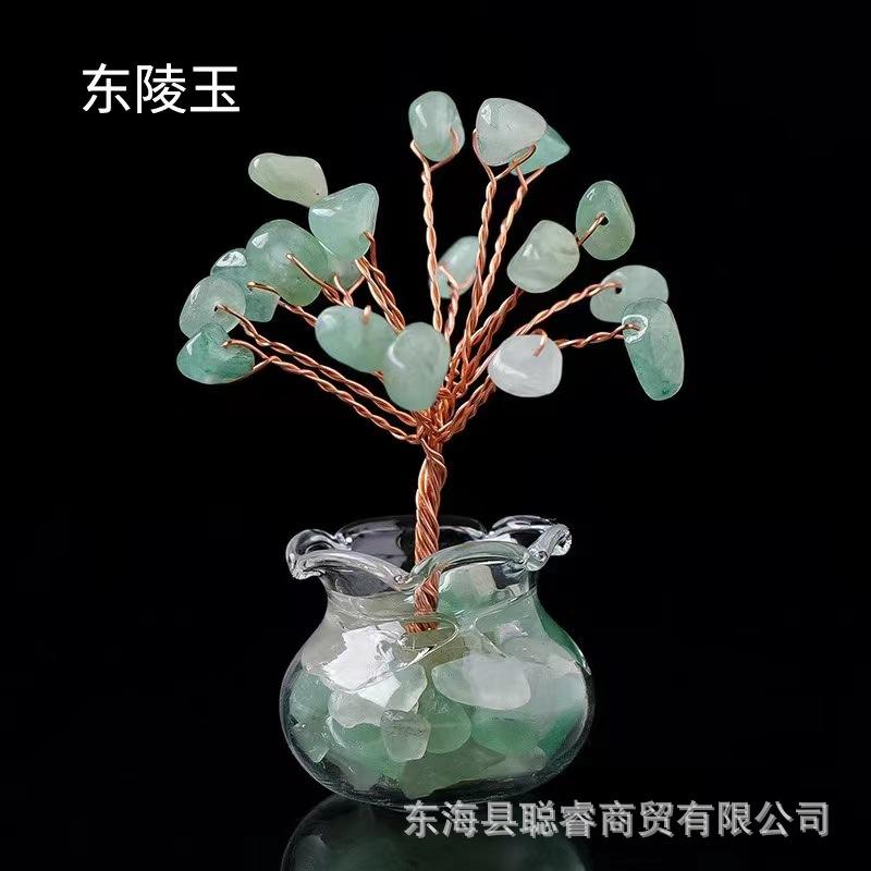 Crystal Tree Mini Vase Handmade Decor Home Car Ornament Natural Stone Pebble Money Tree Gift