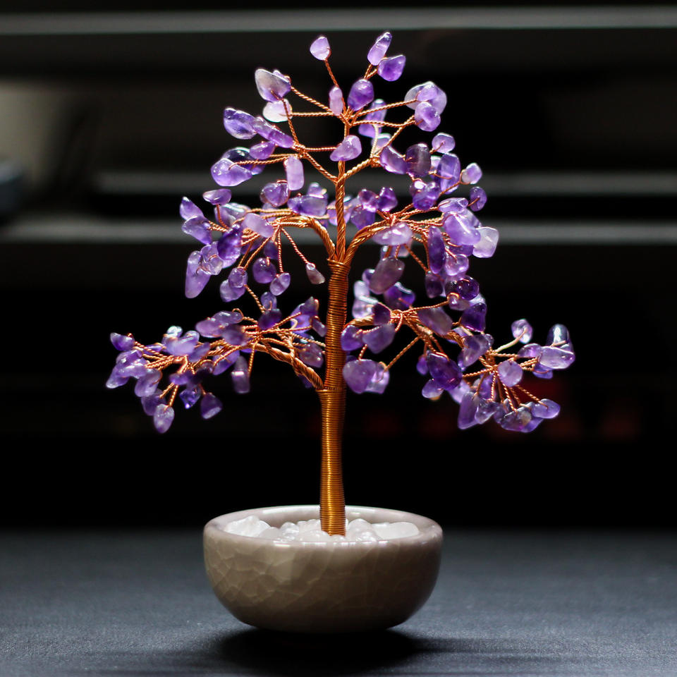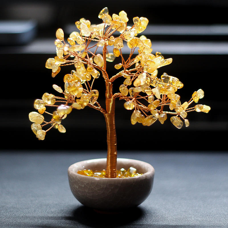 Crystal Tree Yellow Citrine Wire Wrapped Miniature Home Office Desk Decoration Ornament