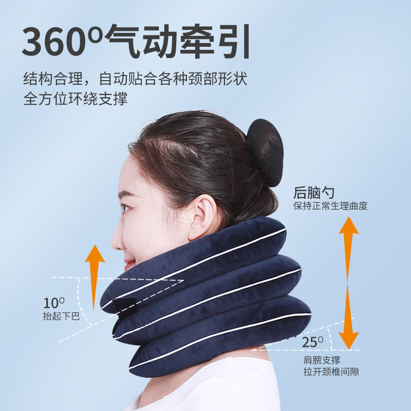 Crystal Velvet Inflatable Cervical Traction Device Triple Tube Manual Neck Brace For Home Spine Stretching